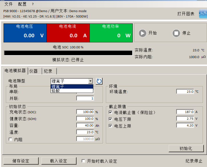 EA雙向直流電源,還可以作為電池模擬器使用,模擬鉛酸電池和鋰電池。