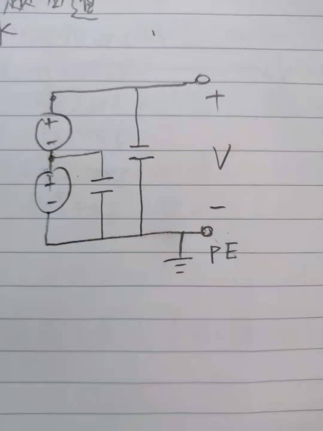 一般而言,最好不要采用串聯(lián)的方式來供電。因為如圖所示,直流電源的正負極對地都有一個絕緣耐壓值。