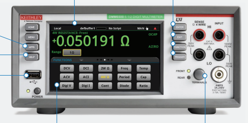 獲取 15 項內(nèi)置測量功能,包括數(shù)字化、電容和溫度。 在低功耗設備上進行低電流和低電阻測量。 使用內(nèi)置的數(shù)字化器捕捉瞬態(tài)信號。 同時查看兩個測量值以最大化測試數(shù)據(jù)。 DMM6500 使得無需使用其他儀器。